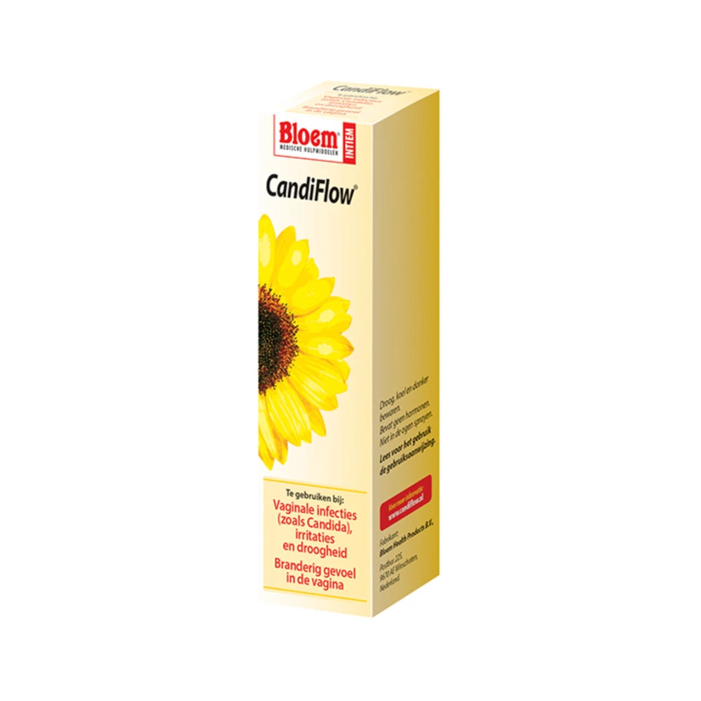 Bloem CandiflowMedisch hulpmiddel. Bloem Candiflow 422 gebruik je ter preventie en behandeling van vaginale irritaties, een branderig gevoel en vaginale droogheid door bevochtiging van het vaginaal epitheel. CandiFlow bevat melkzuur om de zuurgraad in de vagina in het veilige gebied te brengen van 4 – 4,5 pH.